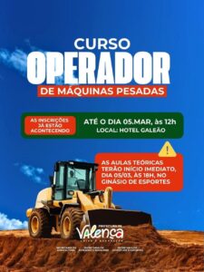 Destaques Prefeitura de Valença abre inscrições para o curso de Operador de Máquinas Pesadas Leia mais » março 4, 2026
