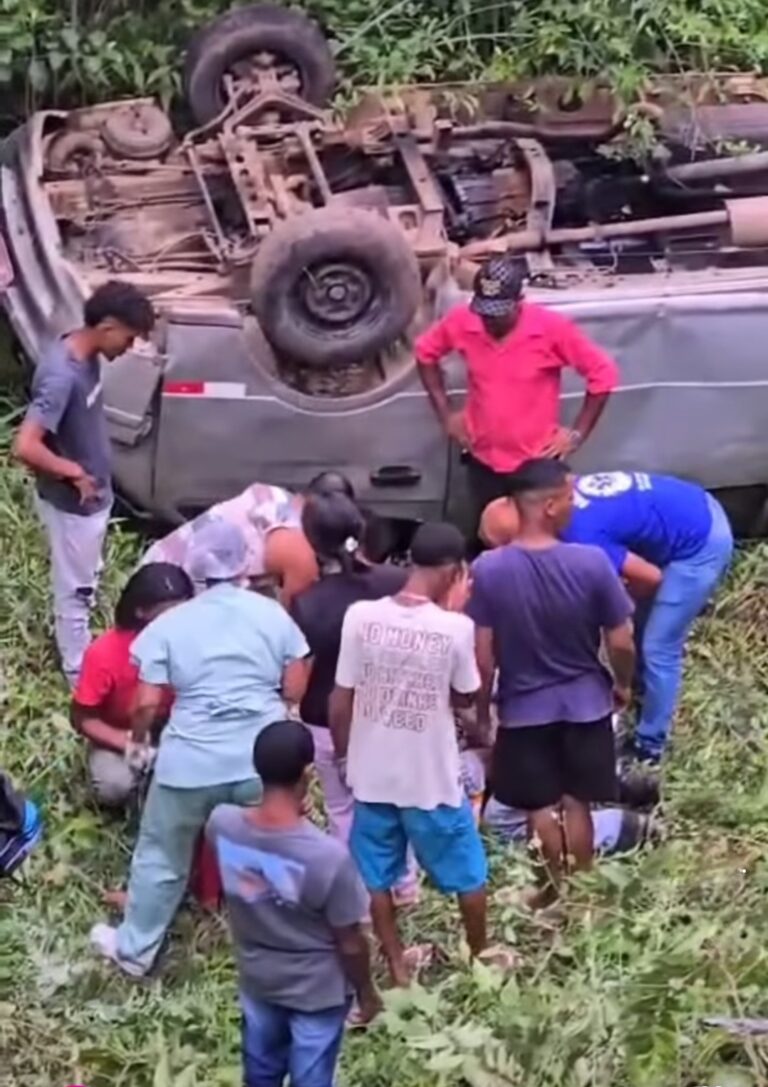 Passageiros de uma Topic ficaram feridos, depois que o veículo caiu em uma ribanceira, na cidade de Piraí do Norte, na tarde