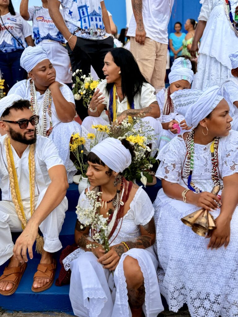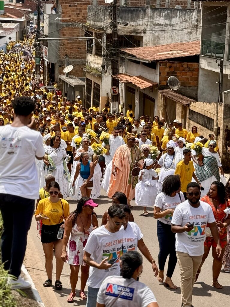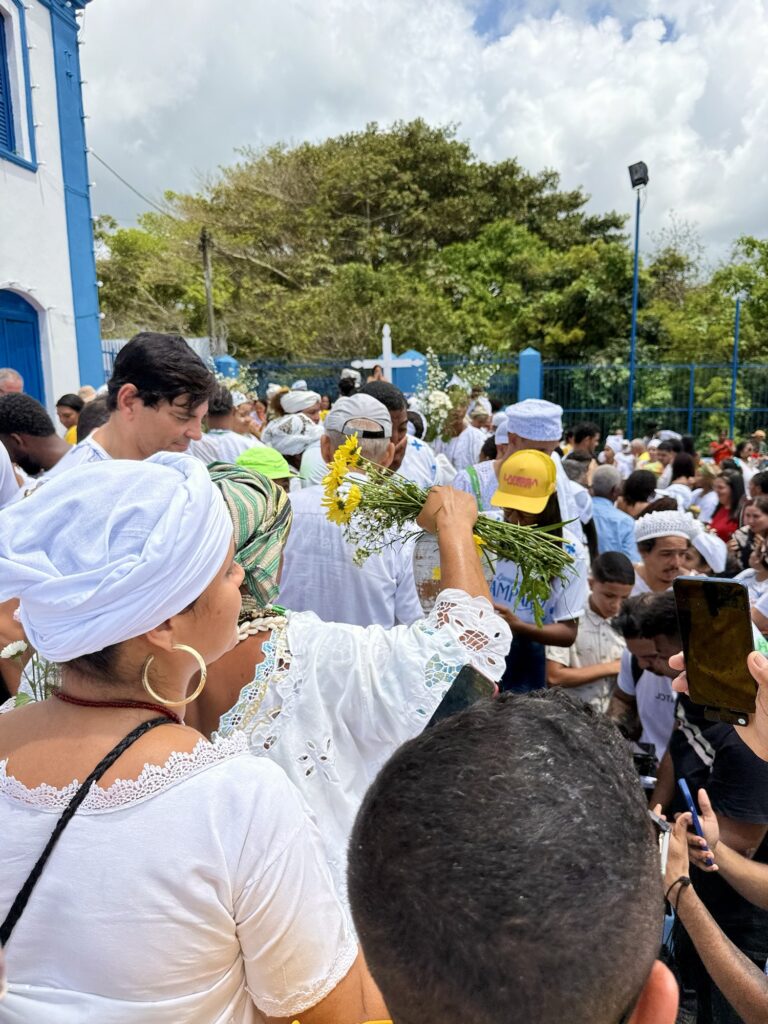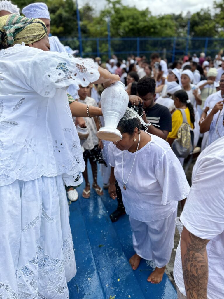 Logo nas primeiras horas da manhã, o cortejo saiu em clima de alegria e devoção, com as baianas vestidas de branco, segurando potes de flores e jarros de água de cheiro, símbolo de purificação e boas energias. A caminhada seguiu pelas principais ruas da cidade, acompanhada por grupos de percussão, capoeiristas e fiéis, até chegar à Igreja de Nossa Senhora do Amparo, onde aconteceu o tradicional rito de lavagem das escadarias.