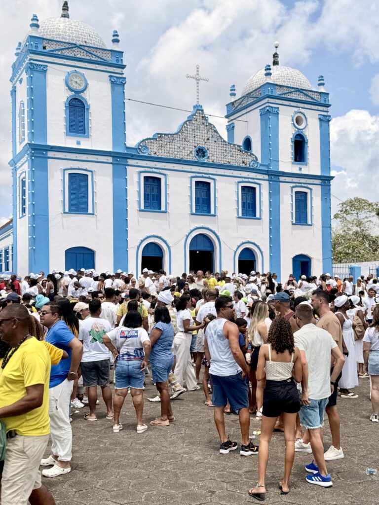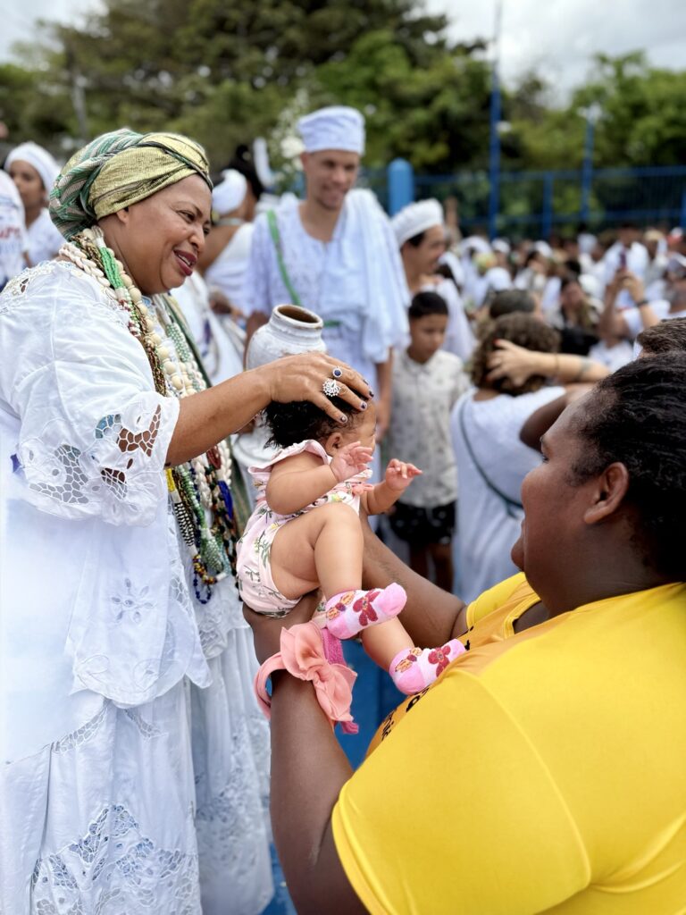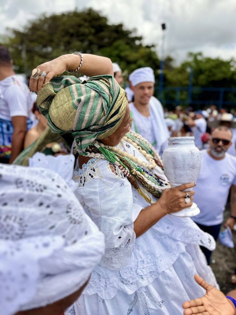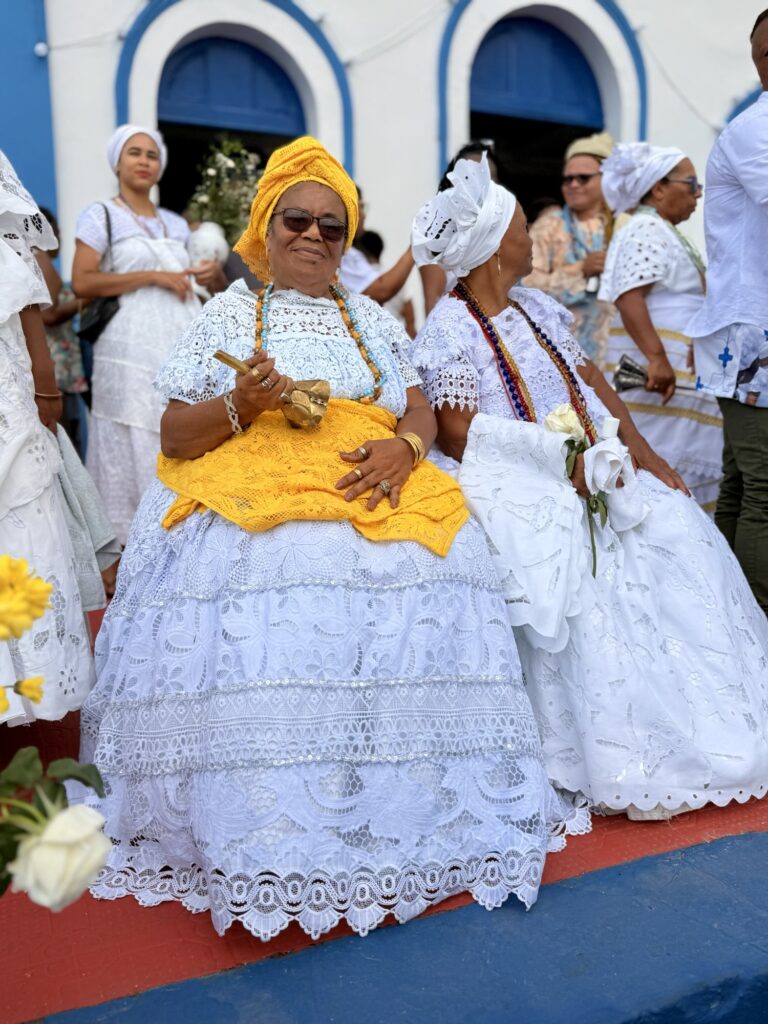 Logo nas primeiras horas da manhã, o cortejo saiu em clima de alegria e devoção, com as baianas vestidas de branco, segurando potes de flores e jarros de água de cheiro, símbolo de purificação e boas energias. A caminhada seguiu pelas principais ruas da cidade, acompanhada por grupos de percussão, capoeiristas e fiéis, até chegar à Igreja de Nossa Senhora do Amparo, onde aconteceu o tradicional rito de lavagem das escadarias.