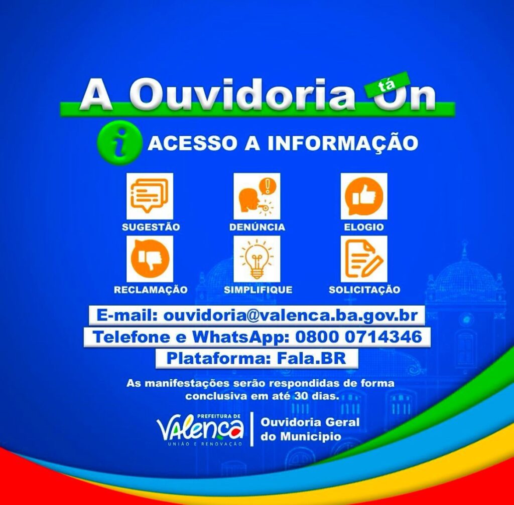 A Prefeitura de Valença, comprometida com a transparência e o fortalecimento da participação cidadã, está ampliando suas formas de interação com a população. Agora, os cidadãos podem encaminhar sugestões, denúncias, elogios, reclamações, solicitações, pedidos de simplificação e de acesso à informação por diversos meios de comunicação.