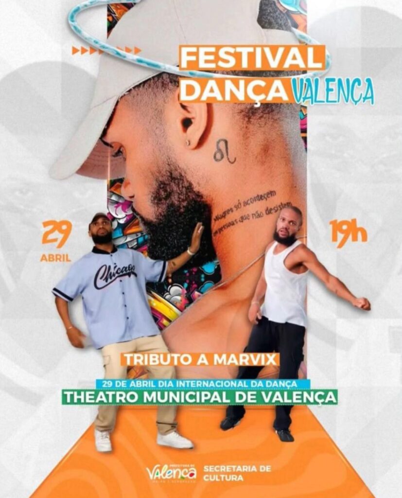 Alô, galera da dança! Nesta terça (29), em comemoração ao Dia Internacional da Dança, a Prefeitura de Valença através da Secretaria de Cultura irá promover um festival de dança super especial! Este evento é uma data importante para o calendário cultural do nosso município e contará com apresentações de companhias de dança, solos e duos da nossa cidade.Além disso, teremos um tributo em homenagem ao saudoso Maxwell, o popular Marvix. Vai ser lindo demais! Data: 29/04 – Dia Internacional da Dança Horário:** 19h Local:** Theatro Municipal de Valença Entrada:** Gratuita!Não perca essa oportunidade de celebrar a dança e homenagear quem tanto contribuiu para a nossa cultura! Espero ver todos lá!