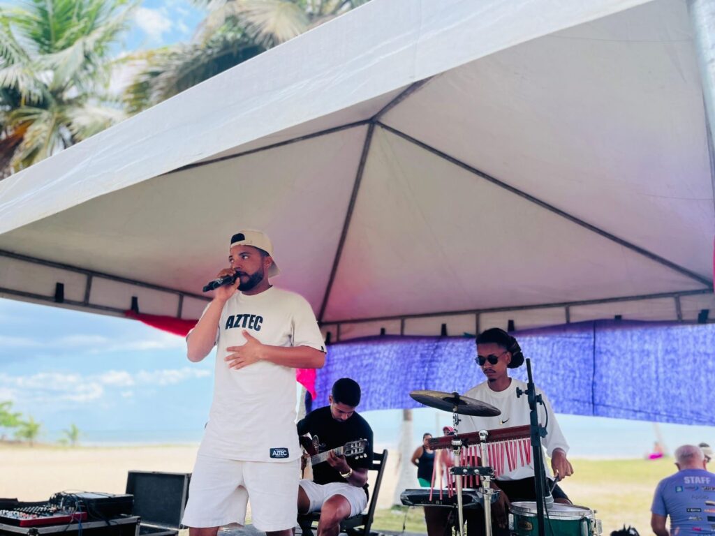Os participantes também puderam visitar stands parceiros, como a Clínica Marcos Andrade, Body Suplementos, Grupo CIMED e o Centro de Referência de Atendimento à Mulher (CRAM – Maria Cláudia Rodrigues), que ofereceram orientações e serviços de saúde. Para fechar com chave de ouro, o cantor Ruan Moraes embalou o público com aquele pagodinho leve que combina com o clima da praia.