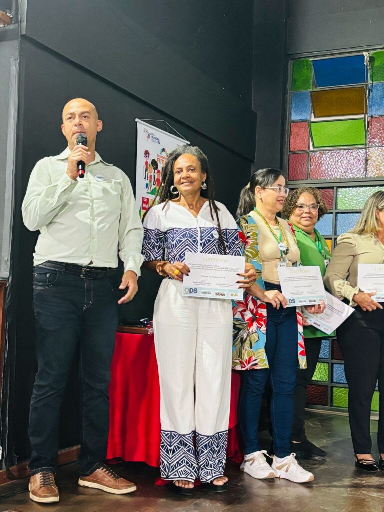 Outro momento especial foi a entrega dos certificados aos membros da primeira Comissão Municipal dos ODS, que terão a missão de acompanhar, orientar e articular ações que fortaleçam a implementação da agenda no município.