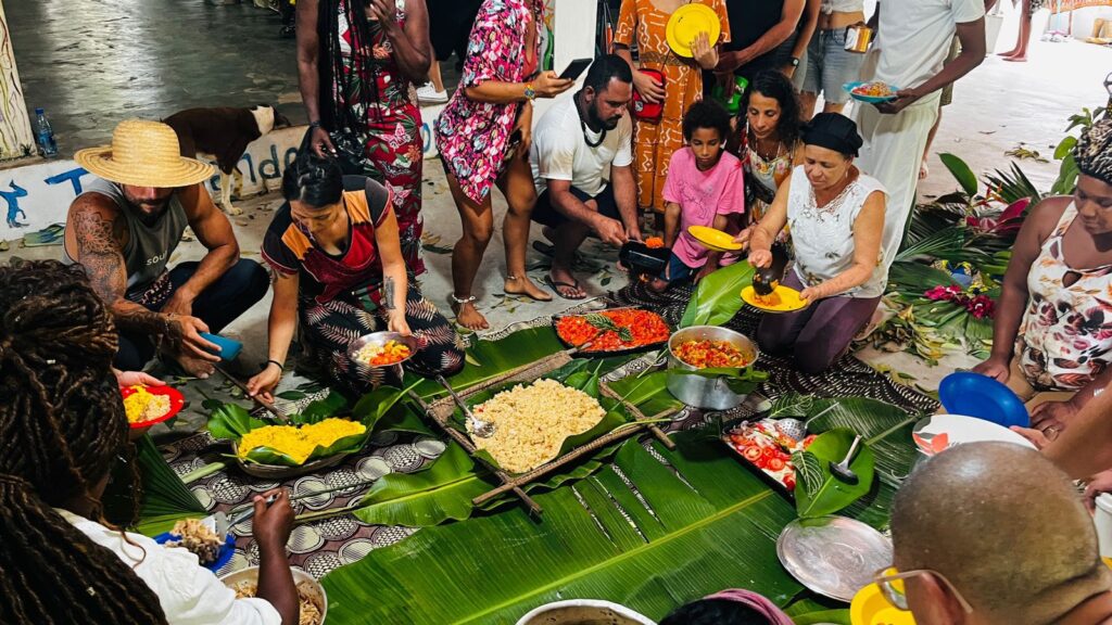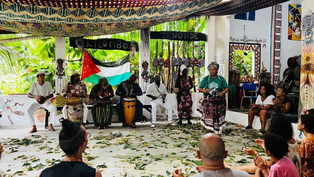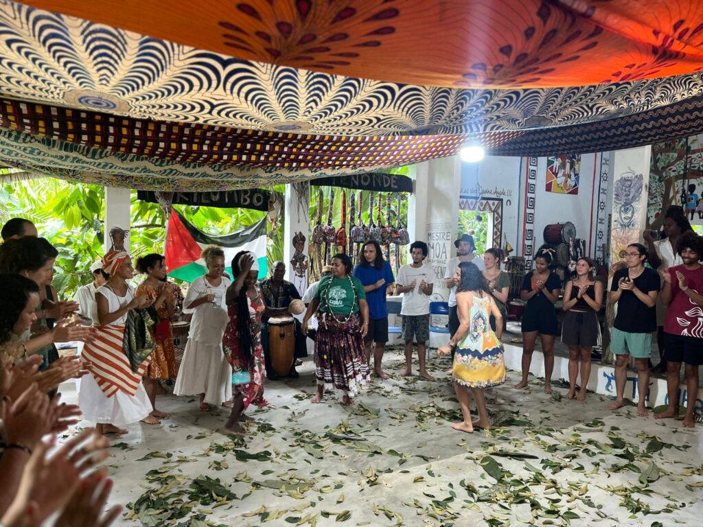 O evento idealizado pelo mestre de capoeira Angola Cobra Mansa e o mestre quilombola Nêgo Bispo, recebeu hoje, dia 13 de janeiro, em sua abertura oficial, o Secretário de Turismo, Vidalto Oiticica. Nesta edição, que acontece até o próximo domingo, dia 19, oferece uma programação diversificada com: oficinas de Capoeira, produção de óleos essenciais, permacultura e muitos saberes ancestrais. Este ano, a abertura oficial do evento contou com a participação da líder religiosa Mametu Kafurengá do Tereiro Caxuté, que ressaltou a importância do Kilombo Tenondé para toda a comunidade, sobretudo para que os “saberes ancestrais permaneçam como base de resistência”, promovendo o debate decolonial na sociedade.O Cosmo Angola atraiu curiosos e ativistas de diversos países como, Alemanha, Inglaterra, Chile e Finlândia, interessados nos conhecimentos africanos acerca do funcionamento do universo, e a relação humana com o divino, os espíritos e a natureza. Jaonickson Clabus Cubose é natural de Guinea-Bissau, país da África ocidental, e foi convidado pelo Mestre Cobra Mansa para ministrar oficina sobre um instrumento africano conhecido por Bombolom, basicamente, um tambor de fenda construído a partir de um tronco de árvore, tradicionalmente usado em manifestações sócio-culturais de seu país. Ele explica que, para o seu povo, “os toques são mensagens que desempenham funções de comunicar”. O Kilombo Tenondé destaca-se como um lugar de preservação das tradições de origens de um Brasil profundo, ao proporcionar uma imersão necessária aos conhecimentos ancestrais, idealizando eventos como o Cosmo Angola que não apenas celebra os saberes, mas atua como um lugar de luta e resistência afro-indígenas no Brasil.SECOM PMV